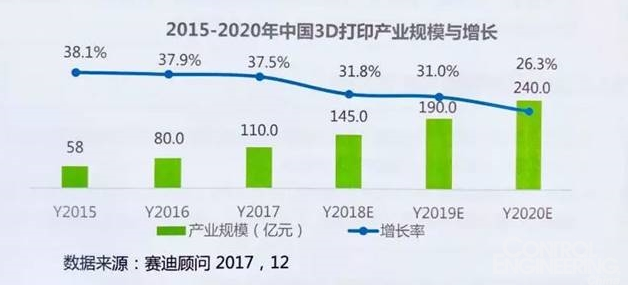 预计,到2020年,中国3D打印产业规模将达到240亿元,年均增速在30%以上。