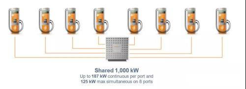 在比较早之前,Charging Point是通过功率管理技术,把一个大的功率柜给不同的充电桩是基于恒流400A的基础上的